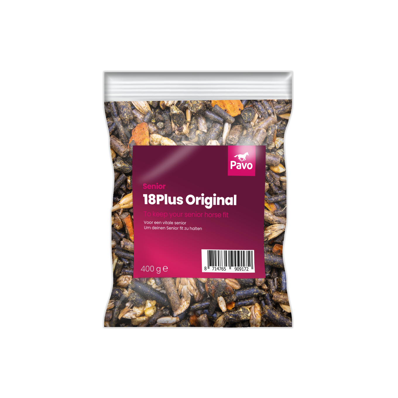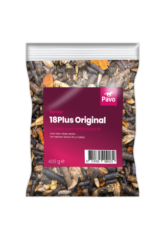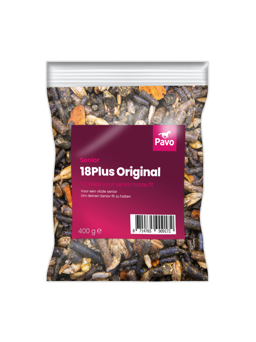 Met Pavo 18Plus verzorg je het ouder wordende paard met alles wat het lichaam vraagt zonder het systeem onnodig te belasten. Deze stofvrije muesli helpt jouw senior om vitaal en fit te blijven. Als je paard zijn ruwvoer niet meer goed kan kauwen dan is Pavo 18Plus in combinatie met Pavo SpeediBeet of Pavo Fibrebeet het complete voer voor de dagelijkse verzorging van jouw senior.